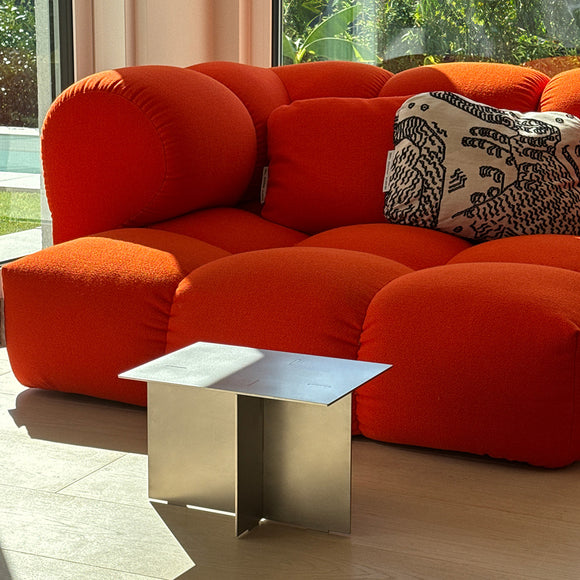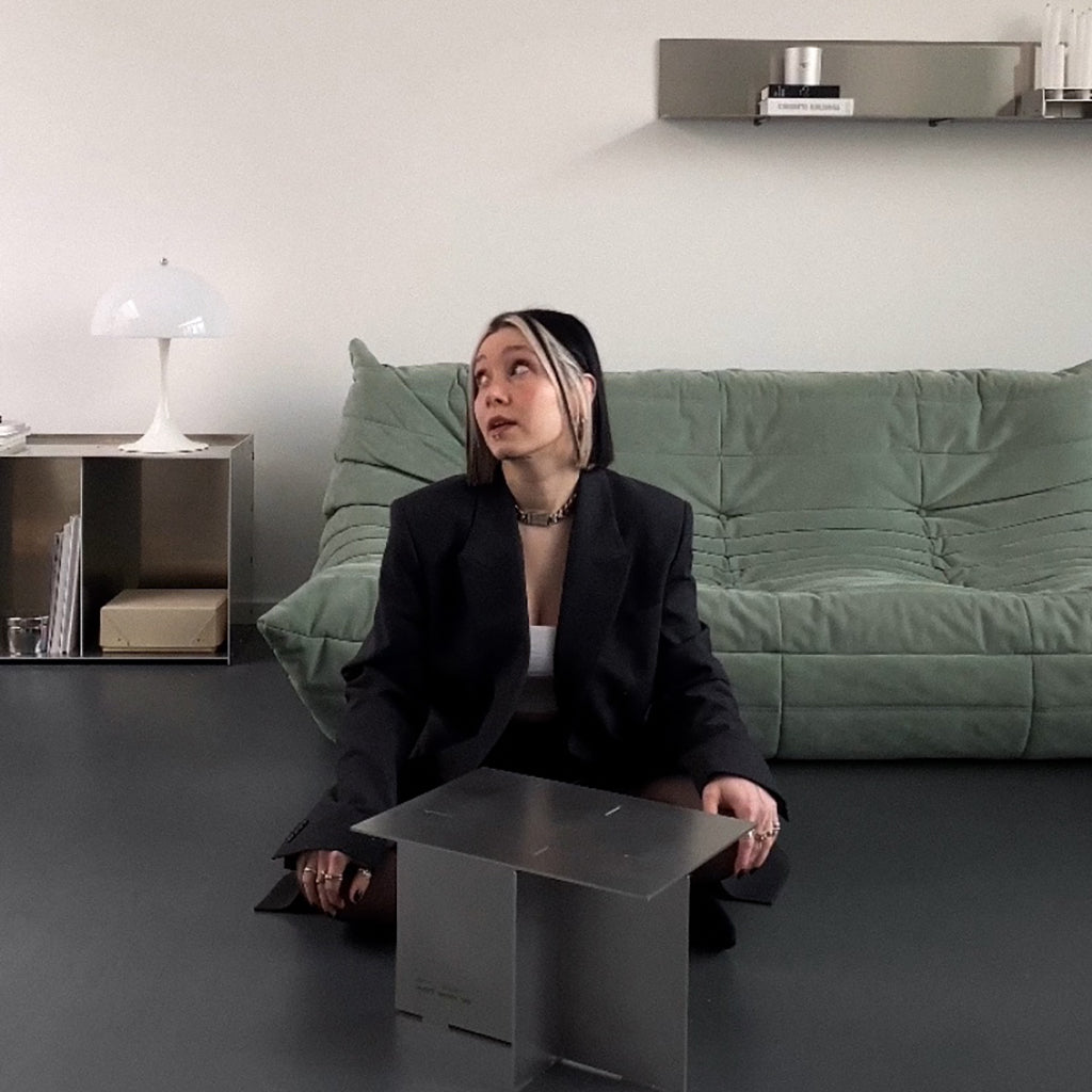 Once united, forever connected. The NOVAK Side Table is a symbol of cherished relationships and shared memories. When the sanded stainless steel elements are joined, they become nearly inseparable. The precisely laser-cut mortise and tenon joints intentionally break through the surface, giving the design its unmistakable character. It's a harmony of asymmetry and symmetry, of matte and shine. NOVAK merges timeless aesthetics with meticulous craftsmanship, responsibly made in Germany. The carefully hand-smoothened edges invite touch. In the light, a vibrant interplay unfolds, with the material gently reflecting the colors of its surroundings—seamlessly integrating into your space, becoming part of your world. Over time, NOVAK develops a unique patina, adding depth and writing your story along with it.